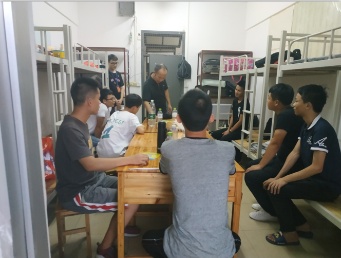 贺杰老师带领团委学生会与青年志愿分会干部前往A9、Al1新生宿舍慰问新生,仔细地询问了新生的住宿情况,并为各专业的新生点明了各专业的发展方向与前景,让新生对本专业有了一个初步的了解。