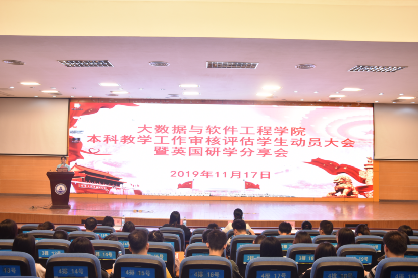 2019年11月17日,新葡的京集团35222vip在明理楼学术报告厅召开本科教学工作审核评估学生动员大会,学院党委副书记韦翠兰、团委副书记朱晓芹、全体辅导员及学生代表出席本次会议。